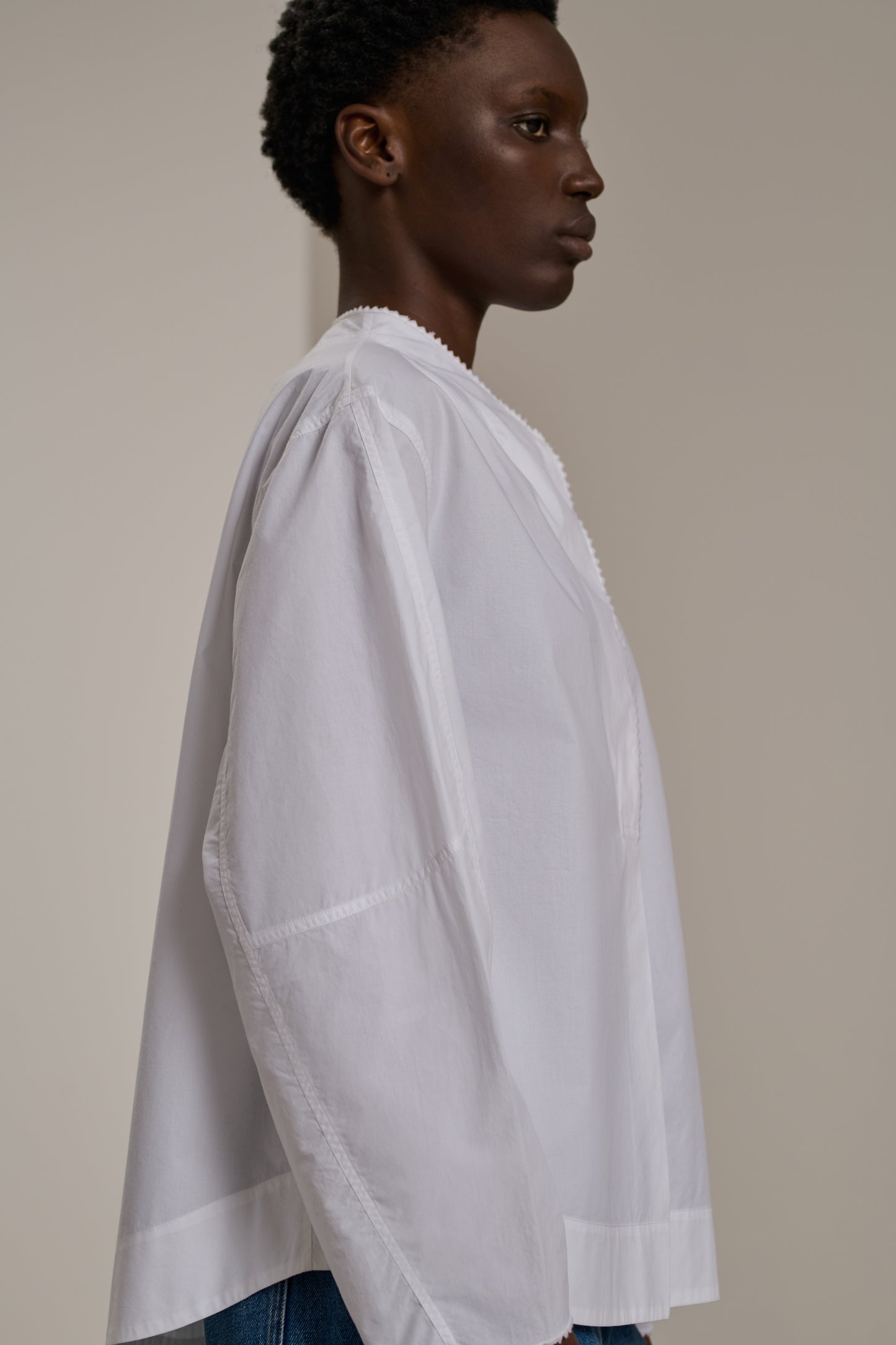 BERRY is a straight-cut cotton poplin shirt. The long sleeves and neckline are embellished with a delicate embroidery detail, adding a subtle touch of femininity. A deceptively classic shirt that will effortlessly complement your wardrobe.