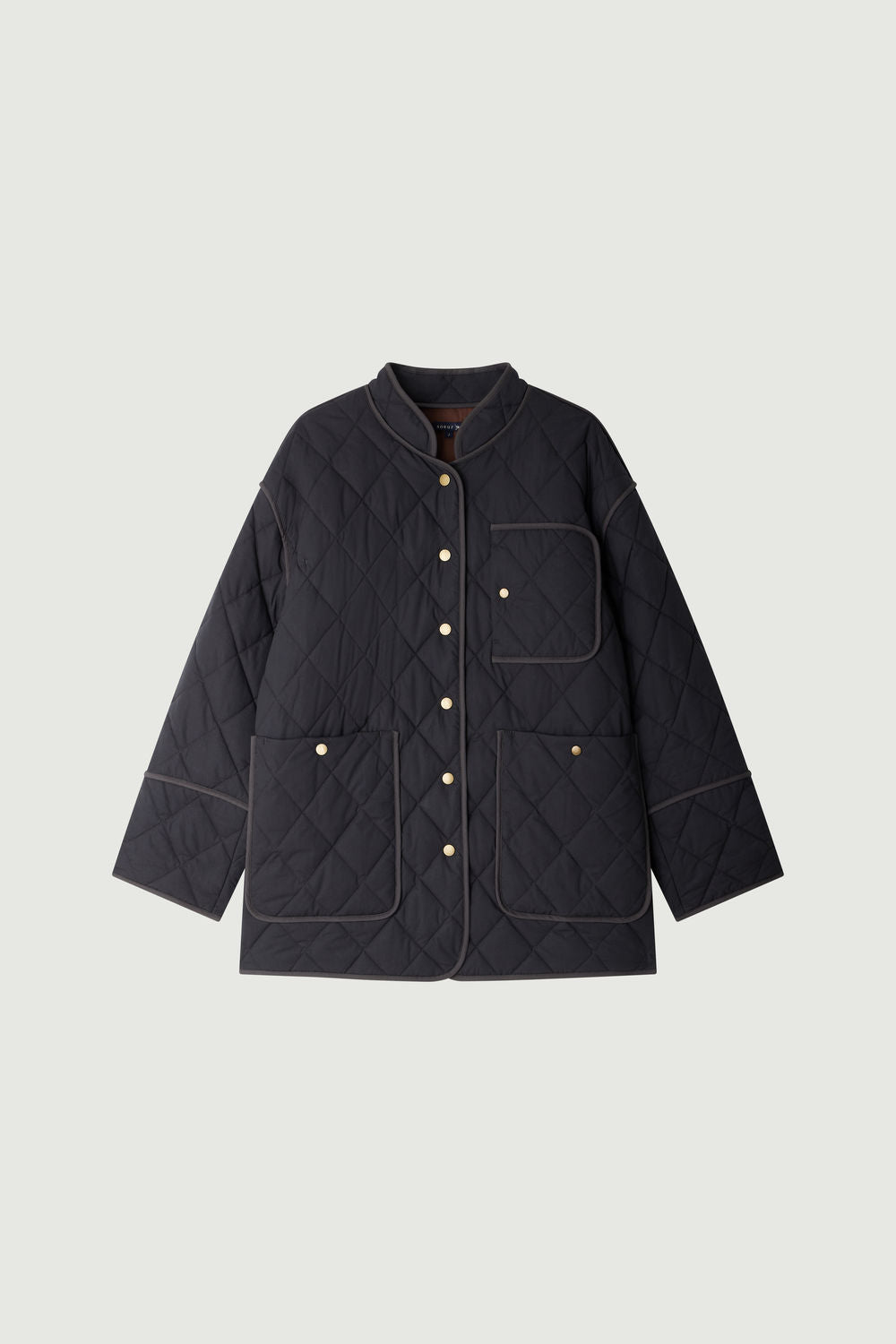 BELFAST is a short coat made from emerised cotton, crafted with fine diamond quilting. It fastens with press studs and features two patch pockets, a chest pocket, and an interior pocket for practical functionality. Its cut is accentuated by an anthracite grey trim.