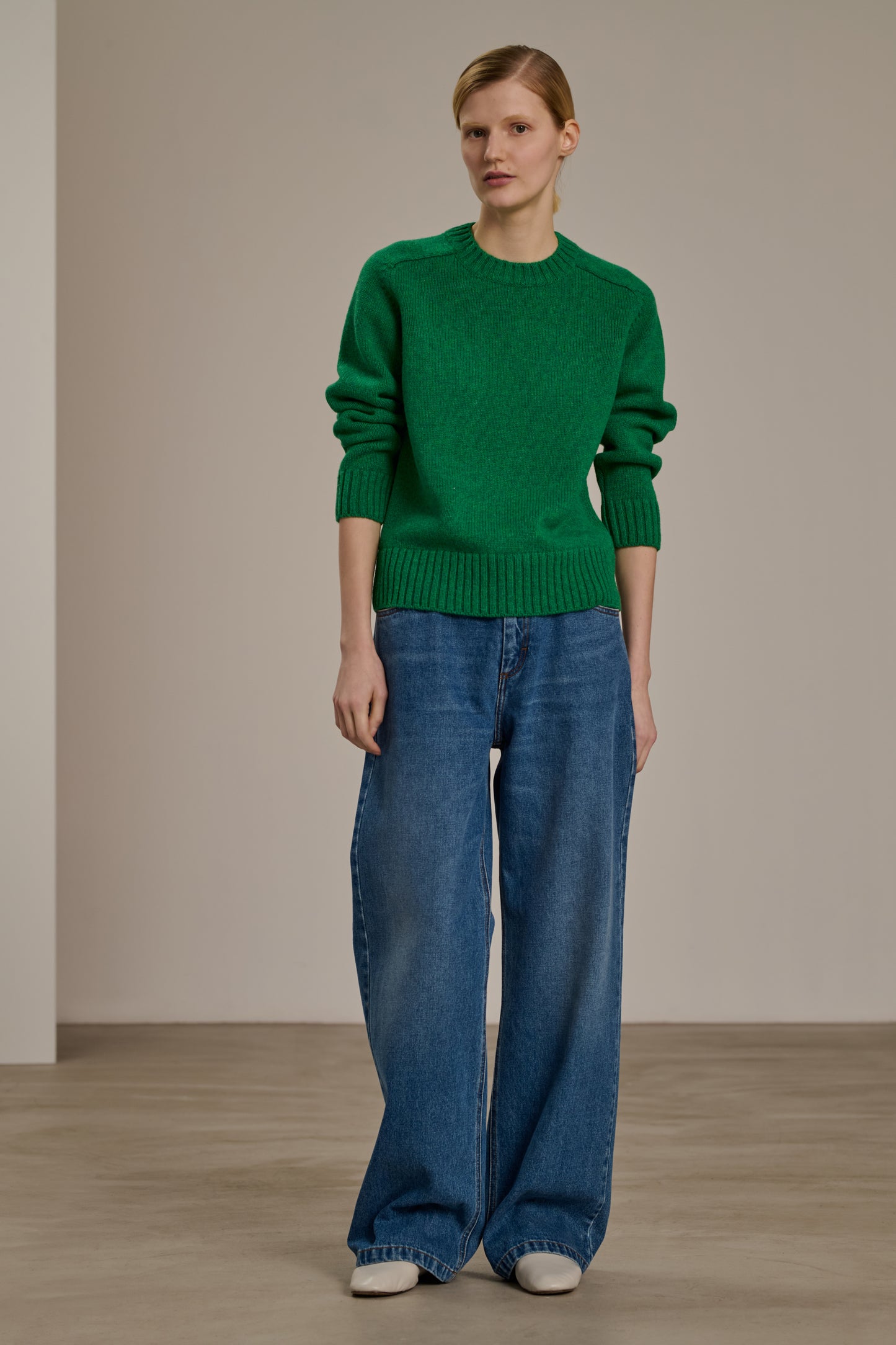 ENVIE is an alpaca and wool jumper, a true icon of our collections. Its fit is classic and straight, with a round neckline that sits away from the neck and raglan armholes giving it a subtly relaxed look, while the voluminous and slightly fluffy knit provides softness and flexibility.