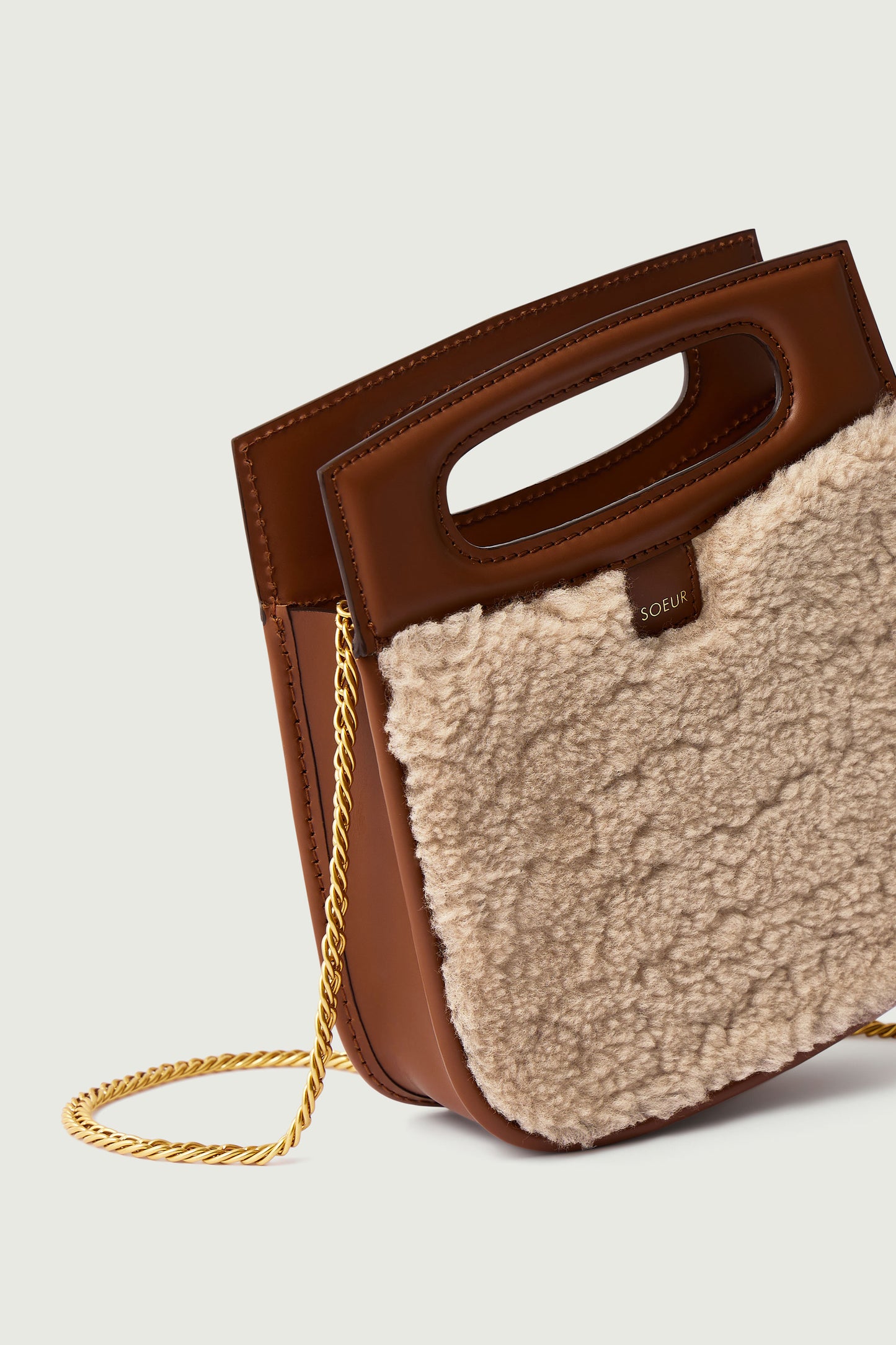 Small bag in natural smooth leather and sand shearling sand/hazelnut